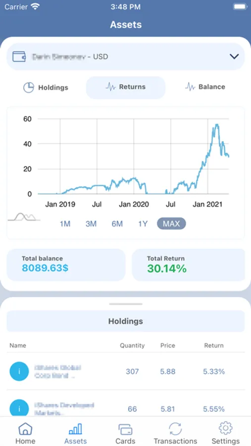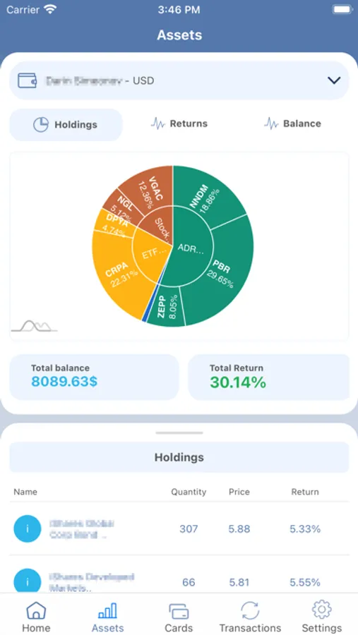 • Elegant, intuitive and easy to use interface to monitor your investments, diversification and market value.
