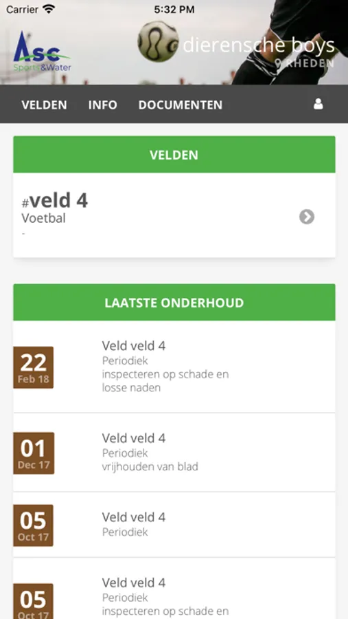 Het logboek van ASC Sports & Water geeft inzicht in het onderhoud van sportvelden.