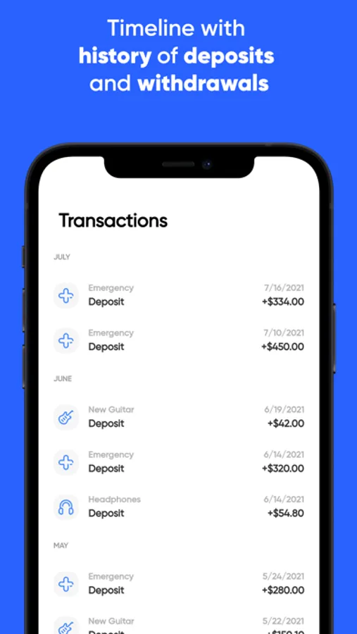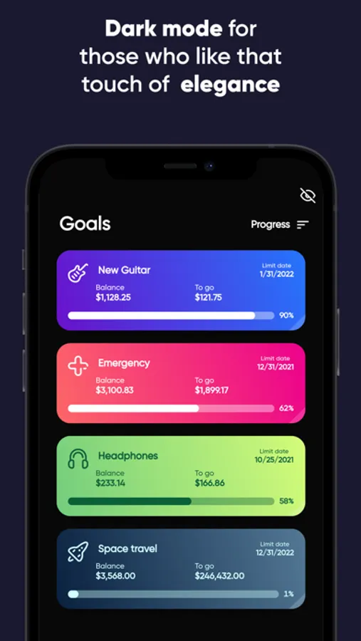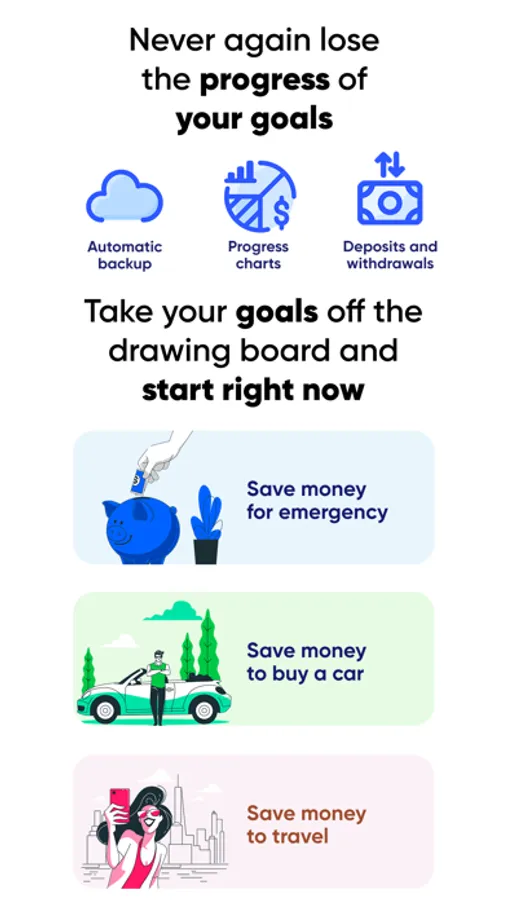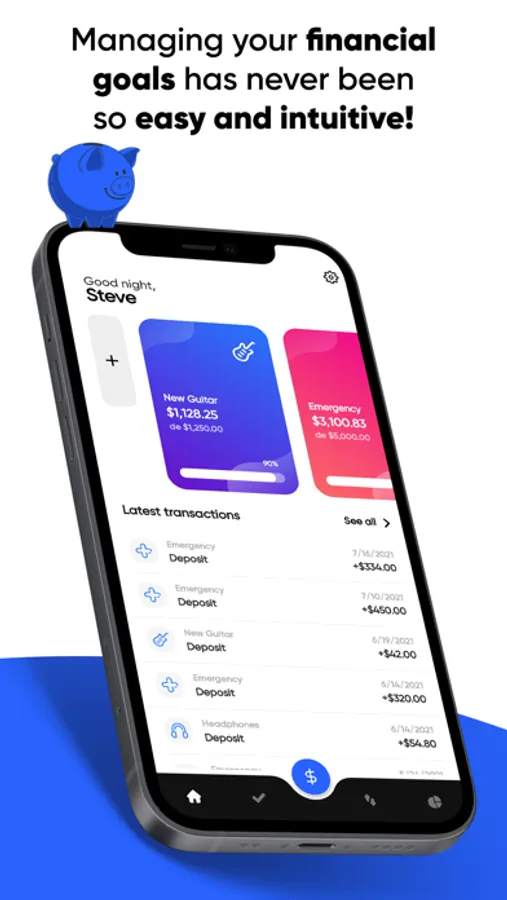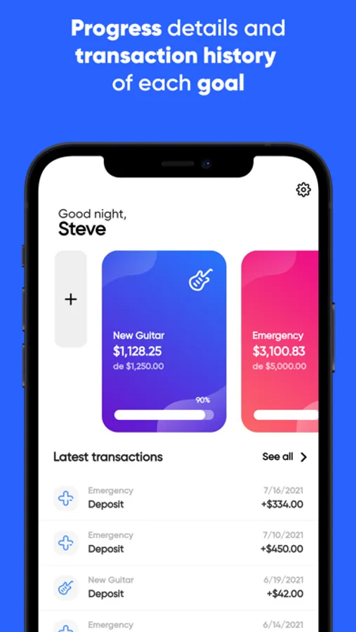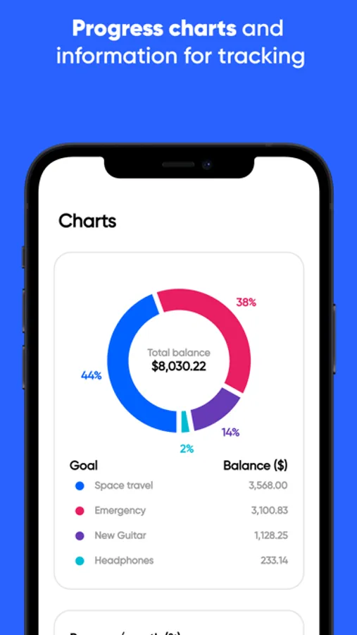 - Progress Charts, Deposits, and Balances: Charts will give you that insight into how goals are progressing over the months, helping you decide on the priorities when making a deposit.