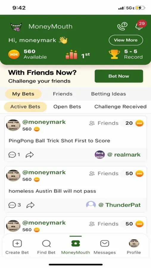 The world can always use more fun and entertainment! MoneyMouth is the easiest way to Challenge anyone, on anything at any time!