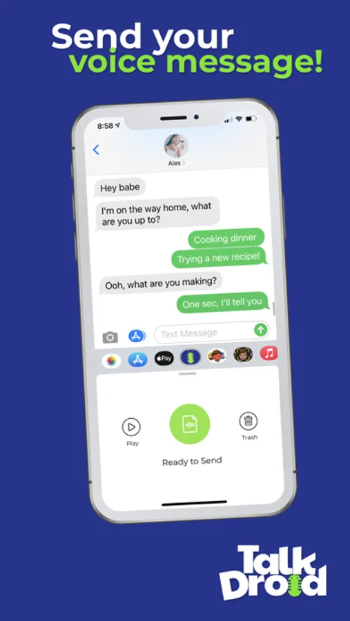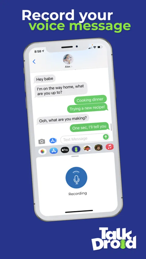 Talk Droid is NEW! The app is the simplest way to send voice messages to Android via SMS. If you are a fan of talk to text, texting, or voice SMS, but not all of your contacts have an iPhone, this is the app for you!