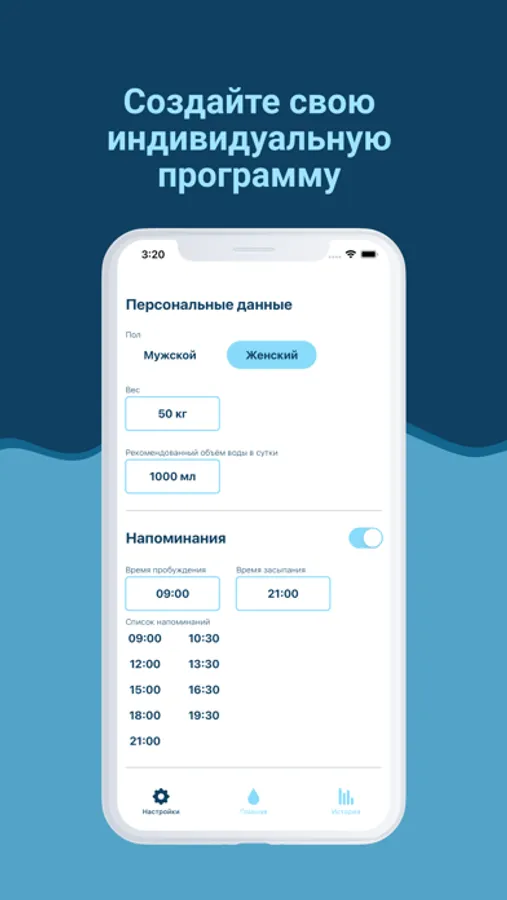 Это приложение интегрируется с приложением “Здоровье”, чтобы добавлять данные о приемах воды.