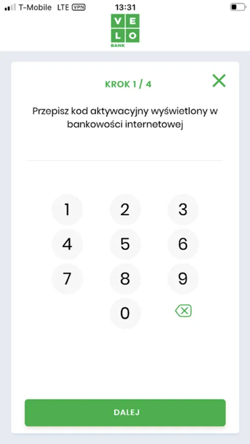 Pierwsze użycie VeloToken wymaga od Ciebie zarejestrowania urządzenia mobilnego podczas logowania bankowości elektronicznej VeloBiznes. Gdy podasz identyfikator i zalogujesz się za pomocą VeloToken, otrzymasz kod SMS, który wpiszesz w polu kod SMS/hasło. W kolejnym kroku ustanowisz własne hasło. Poprosimy Cię jeszcze o podanie nazwy urządzenia, z którego korzystasz. Dalsze kroki parowania wykonujesz już na urządzeniu mobilnym w aplikacji VeloToken. Przepisz na urządzeniu mobilnym kod aktywacyjny, który prezentujemy na ekranie komputera i potwierdź go kodem SMS, który otrzymałeś na telefon. Na koniec podaj swój własny PIN, który będzie służył do logowania do aplikacji VeloToken oraz do autoryzacji dyspozycji z bankowości VeloBiznes.