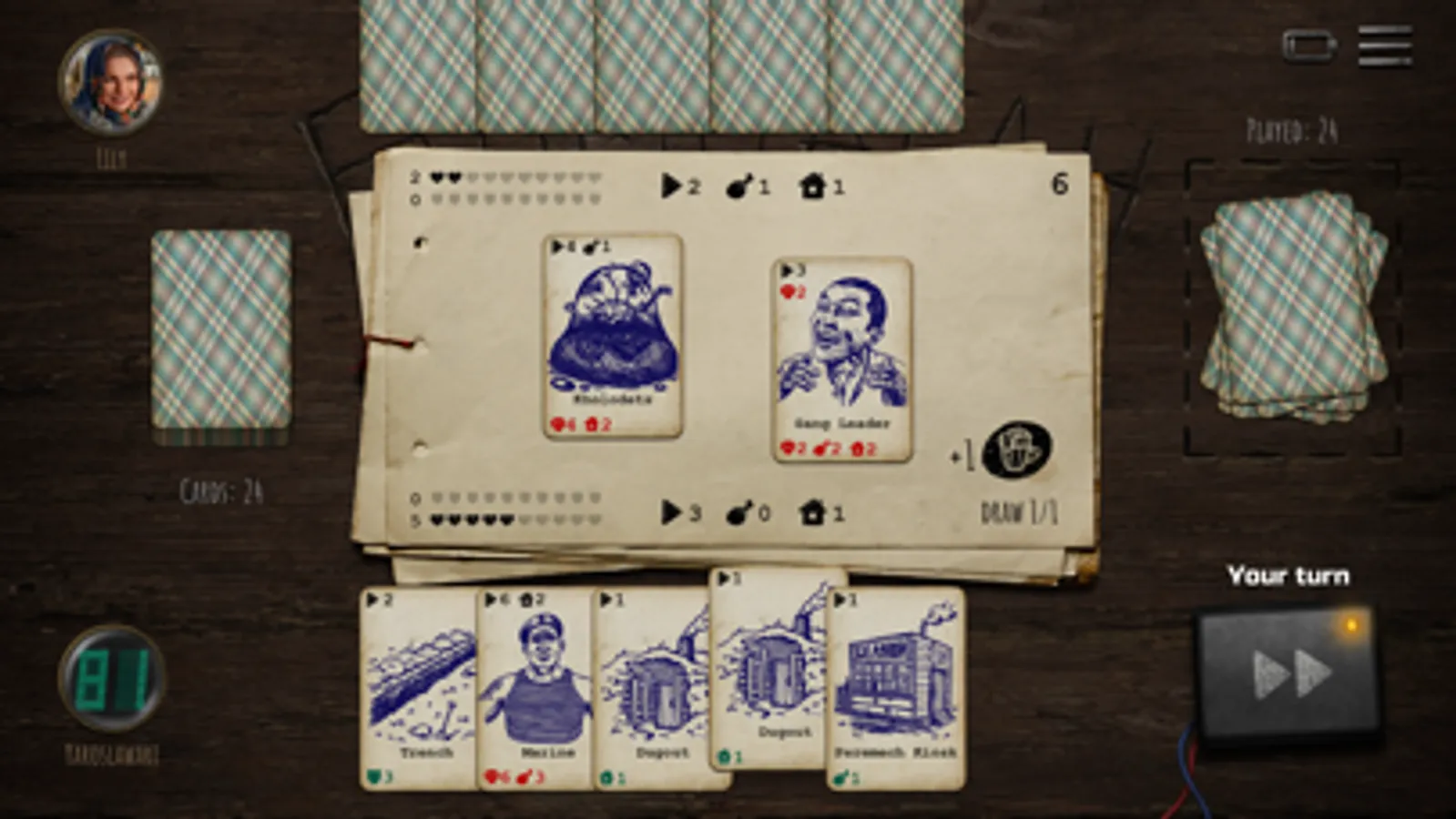Bombagun - is a competitive card game set in the immersive post-apocalyptic universe of ATOM RPG. The game features a simple yet intricate rule set, original card designs and NO pay-to-win card collection elements or loot boxes! All players are dealt from the same deck, so only your own strategy, tactics, wits and luck decide whether you win or lose!