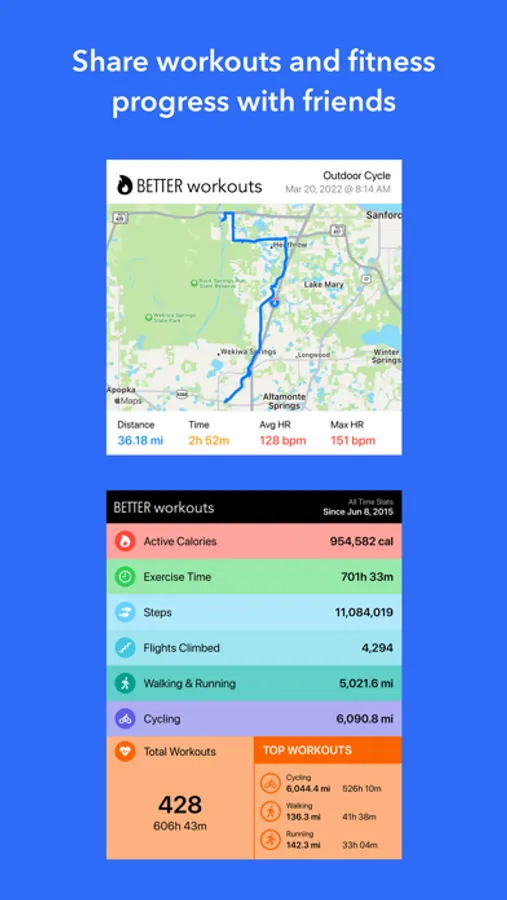 Better Workouts provides an easy way to monitor and track progress for your cycling, running and workout activities.