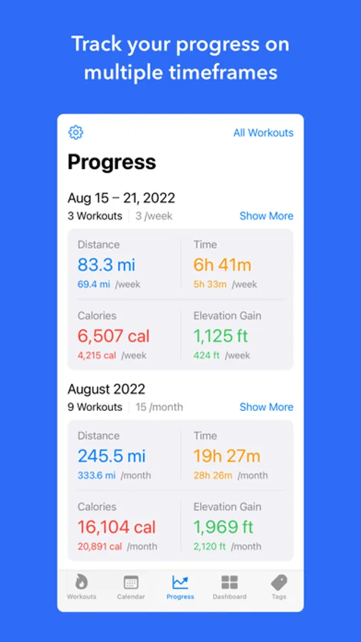 - Analyze your metrics using multiple timeframes in Tags and Progress sections