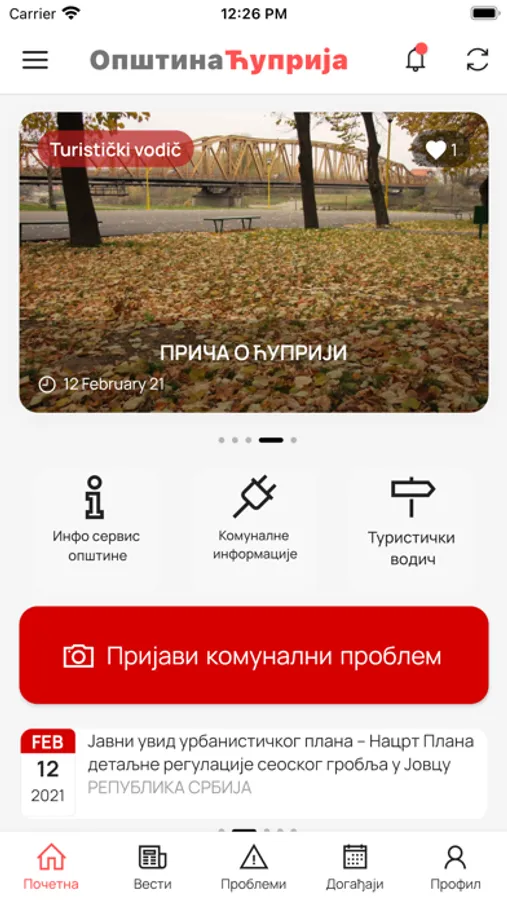 U najopštijem obliku, aplikacija Ćuprija je digitalna platforma za informisanje i obaveštavanje stanovnika i posetilaca ove opštine. Aplikacija servira najnovije vesti iz opštine, komunalne aktivnosti i vesti, servisne informacije, događaje u gradu i turističku ponudu.