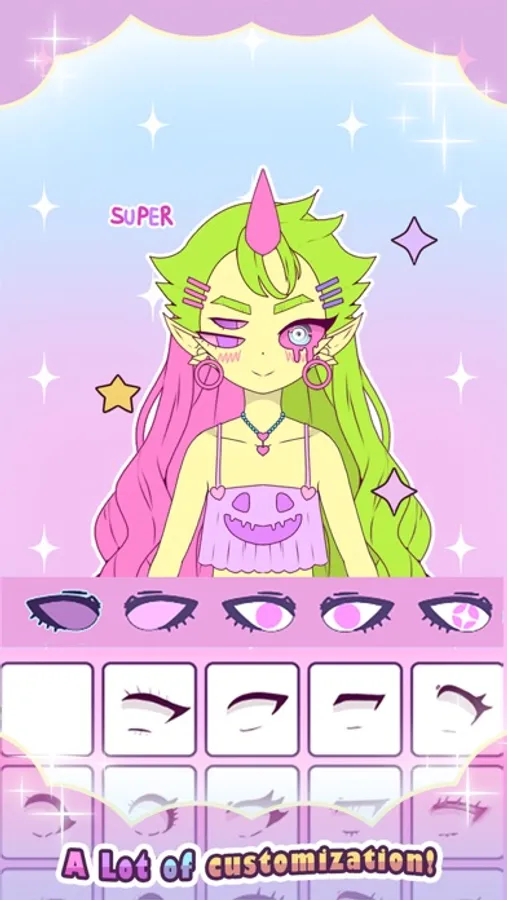 Have fun creating your own character pastel or monster girl. You can choose from a wide range of styles, going from kawaii pastel to monster styles!
