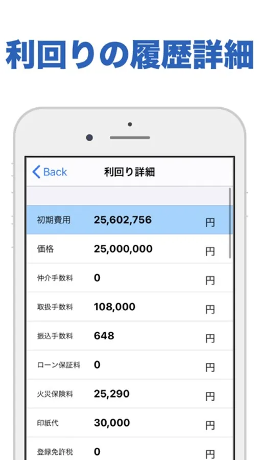 物件情報やローン情報を入力するだけで自動で利回りを計算します。