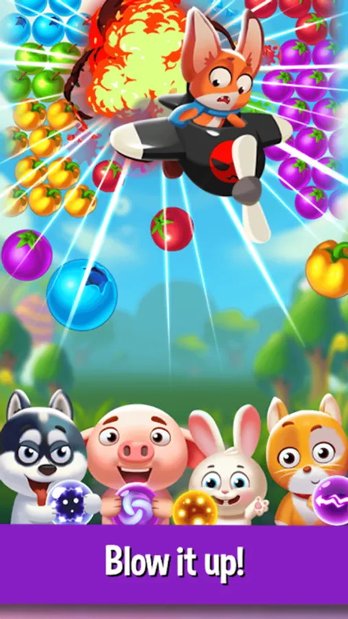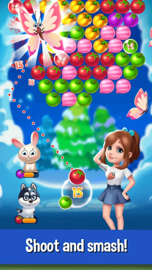 Help the bubble shooter girl to collect all kinds of fruits, free the trapped pets and battle the evil fox. Are you ready for the fruit blast adventure?
