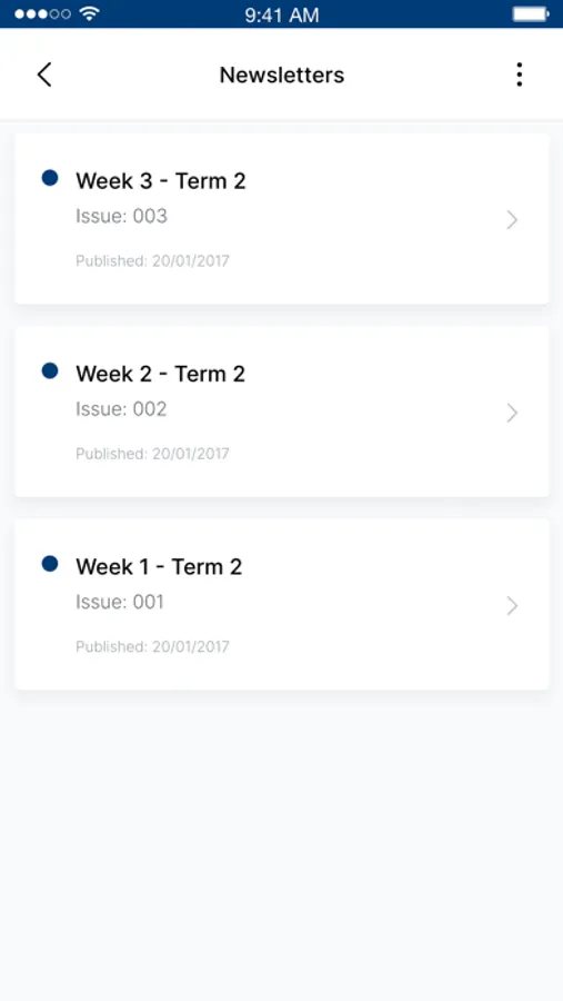 Newsletter: the Newsletter module allows St Spyridon College to share electronic newsletters, directly to the app