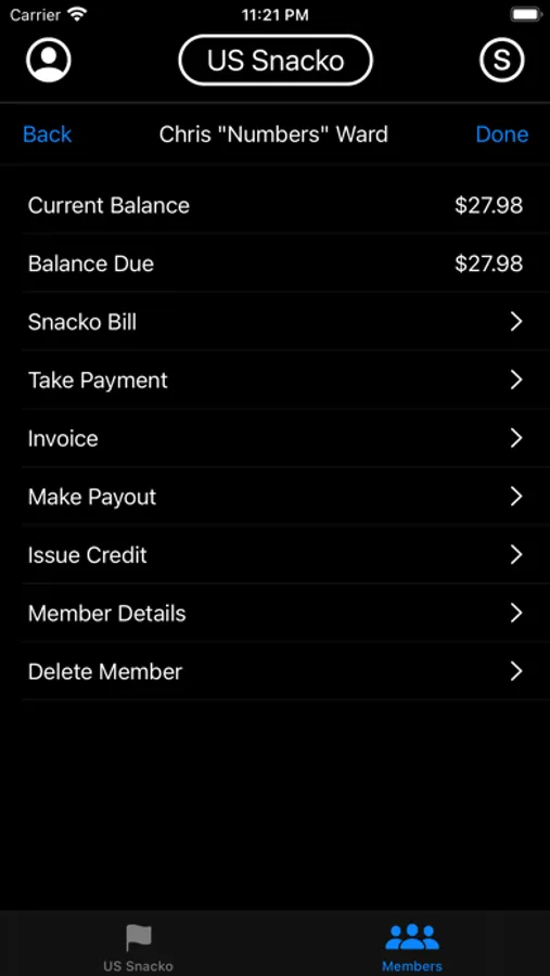 Snackos and their members can use this app to manage their Snacko account. Members can add snack bar purchases to their tab, or view and pay their Snacko Bill. Managers can view snacko bills and process transactions including payments and payouts from the app. If your unit doesn't have a US Snacko account visit us at www.snacko.org to sign up today.