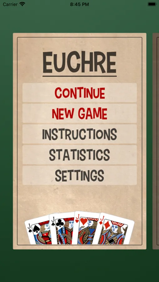 Play Euchre on the go on your iPad or iPhone. Euchre is a fun trick taking card game with four players. Enjoy many different options and customization like Canadian Loner, Stick the Dealer and more!