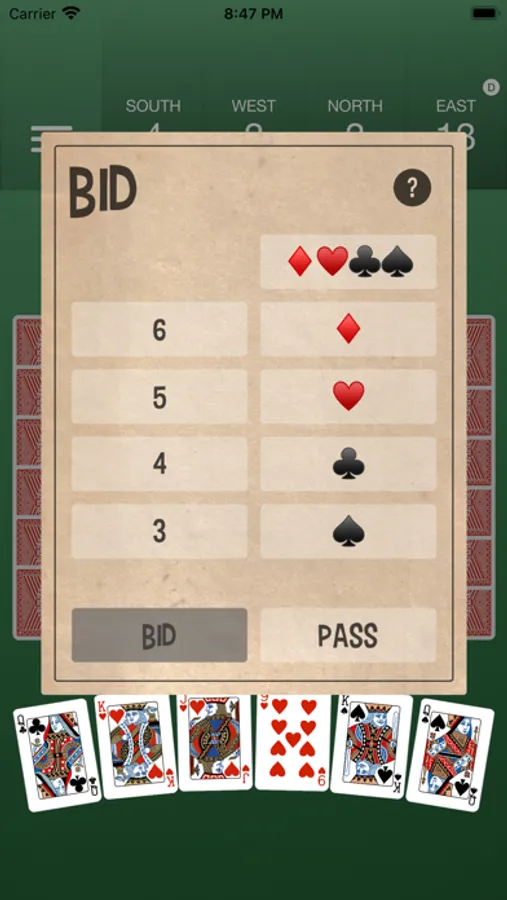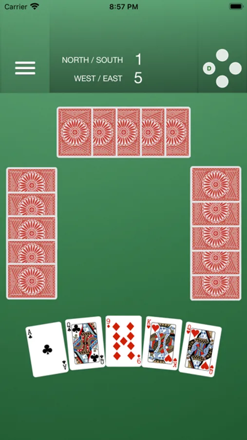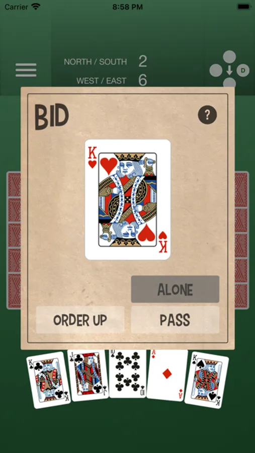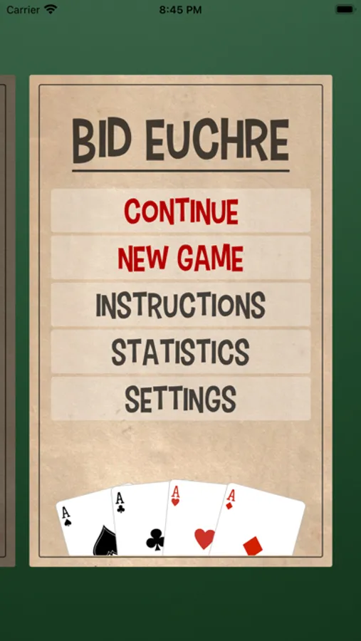 Also includes a fun variation of Euchre called Bid Euchre with a different ruleset. You play without partners, start with six cards, and bid for trump.