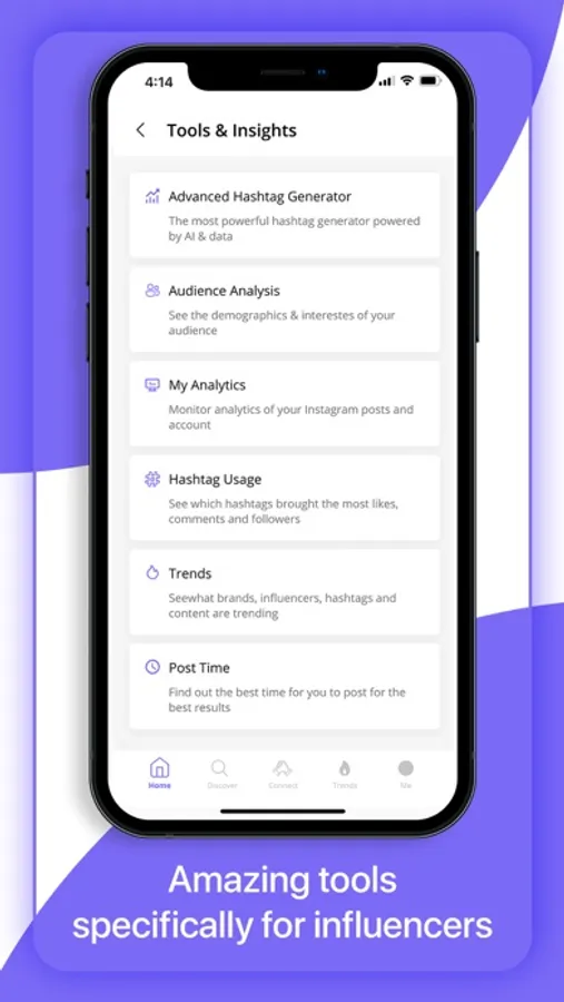 Connect your Instagram account to access our Influencer specific tools such as hashtag generators, analytics, Instagram trends, and many more. Our tools are made specifically for influencers and are backed by real data.