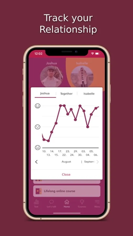 → In just 3 seconds a day, you can track your mood in the Lifelong app by clicking on the relevant smiley. Through the connected profiles, the partner can also see the mood of the other and thus better respond to the needs of the other. Your own mood curve can be built up with daily tracking and compared with that of the partner.