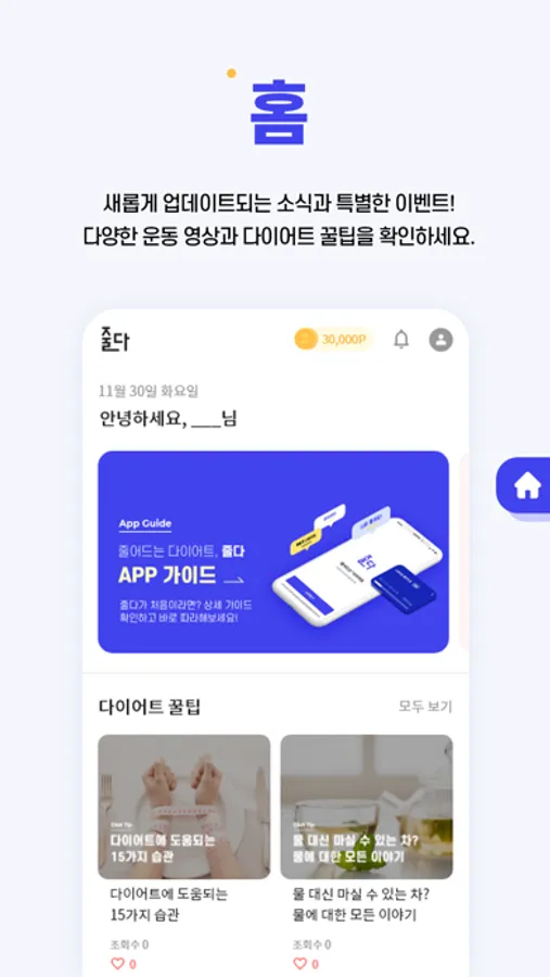 운동 영상부터 당신이 궁금해했던 다이어트 상식과 정보까지 전부 줄다 어플 하나로 확인할 수 있습니다.