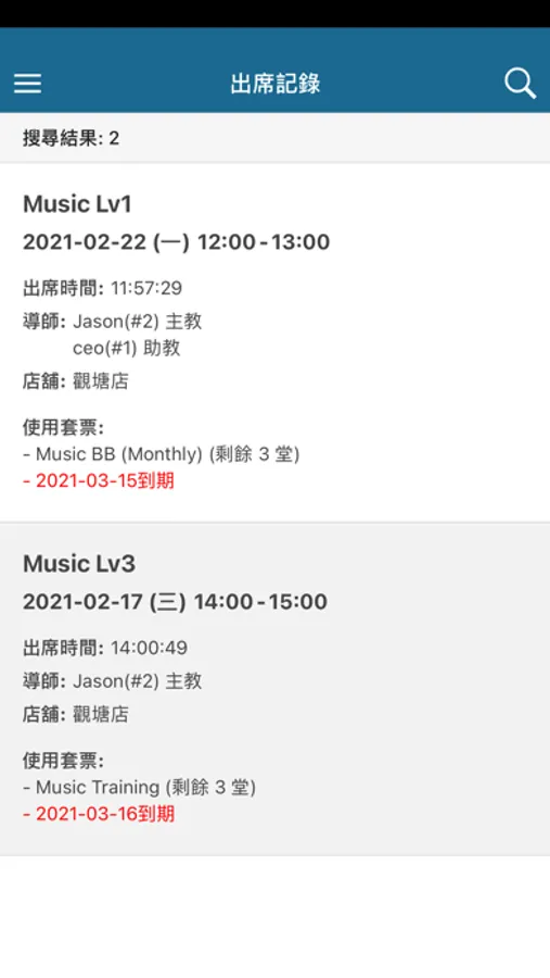 NG Music app provides members with real-time news information, package history, attendance history, timetable, and course/package prices. Members can create profile in the app.