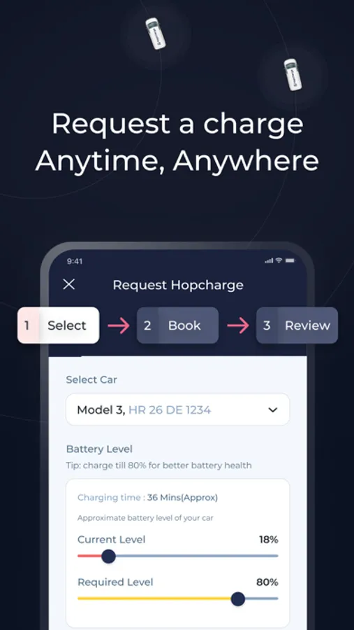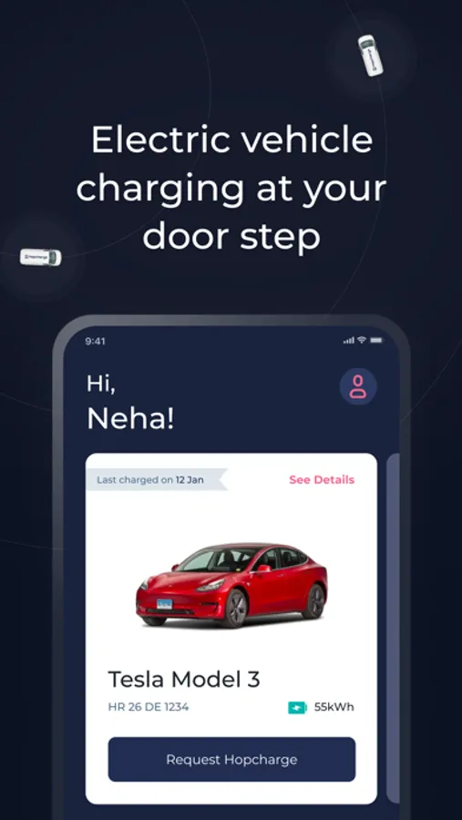 Hopcharge is an on-demand, doorstep electric vehicle charging system. Users can open a mobile application and in a few taps book charging services. A user can book the date, time, and location, and a Hopcharge e-Pod (energy pod) equipped with special purpose proprietary hardware and firmware will come to the requested location and charge the user's EV.