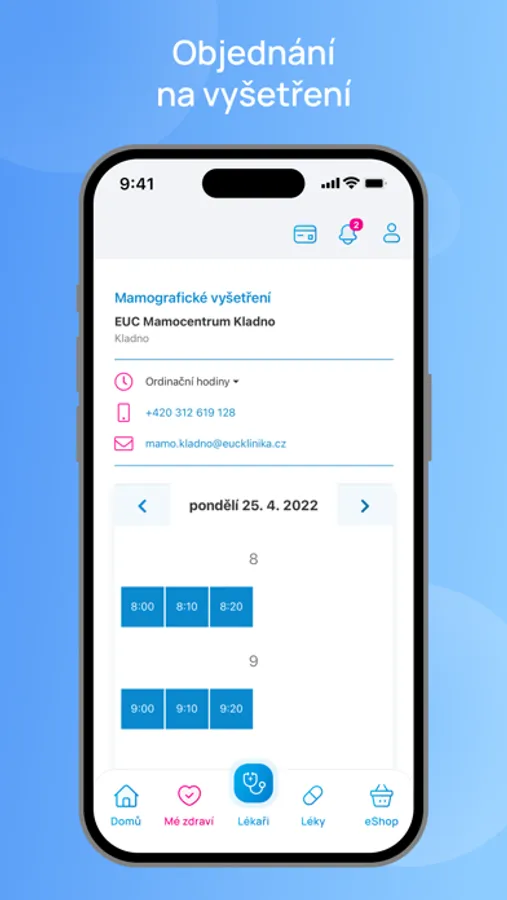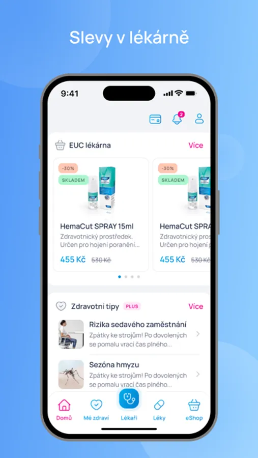 Vítejte ve světě moderní zdravotní péče s aplikací mojeEUC a získejte výhody ve všech našich lékárnách a mnoho užitečných funkcí, které postupně rozšiřujeme v rámci sítě EUC klinik. EUC je největším poskytovatelem ambulantní lékařské péče v ČR.