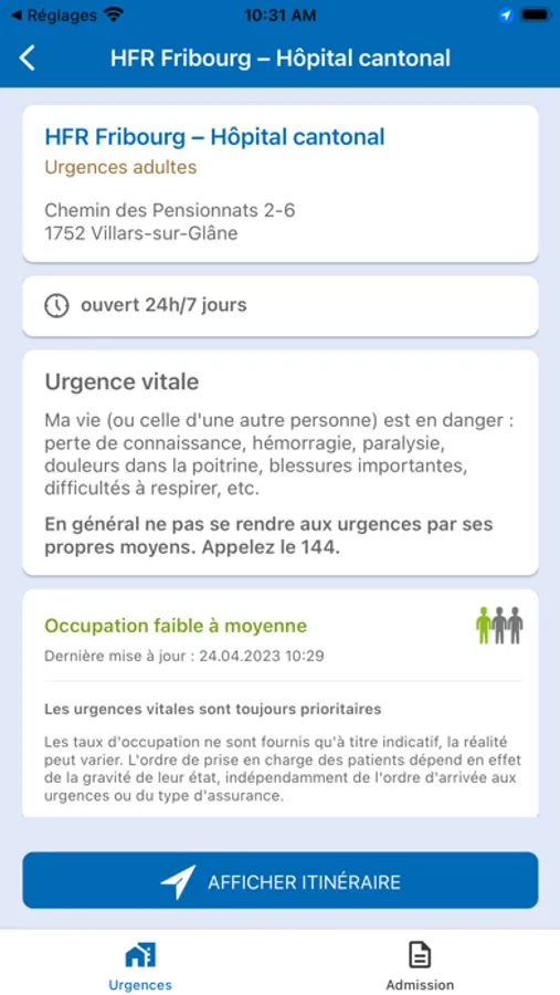 Elle vous permet de choisir le service le plus proche de vous en cas d’urgence – sauf urgence vitale –, d’en consulter en temps réel le taux d’occupation et d’établir l’itinéraire le plus court pour vous y rendre d’après votre position.