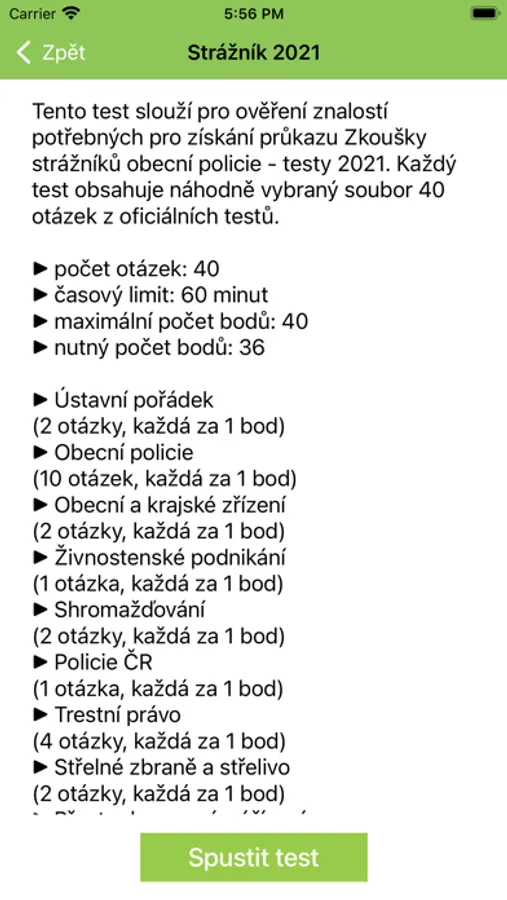 Aplikace slouží k přípravě na zkoušku strážníků obecní policie před komisí Ministerstva vnitra.