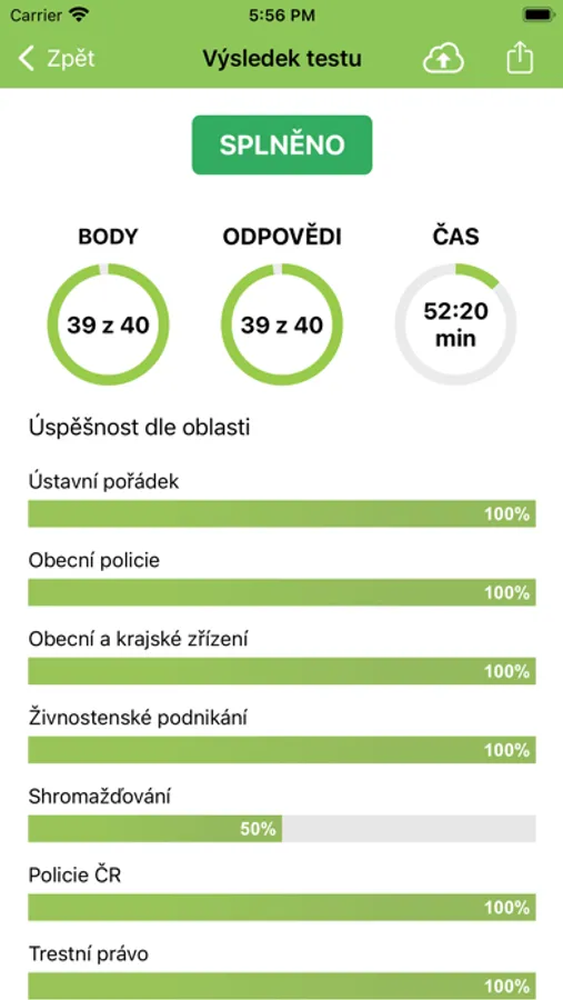 - možnost sdílení výsledků testů a jejich nahrání do webové verze