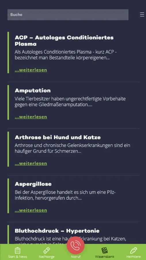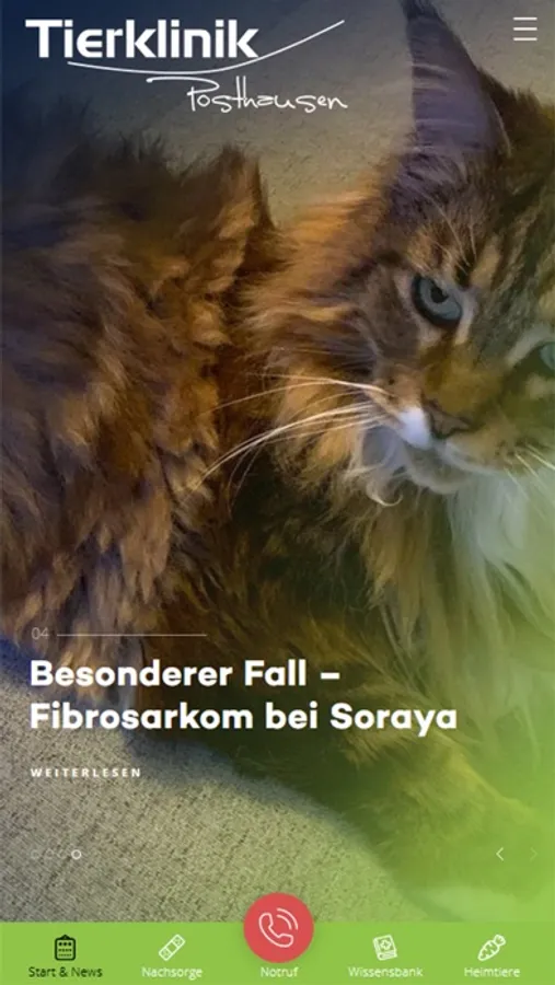Die Tierklinik App bietet Informationen zur Vor- und Nachsorge von Heimtieren, Hunden und Katzen an. Zudem können Sie Kunden und Tierhalter mit der App einen schnellen Rat holen.