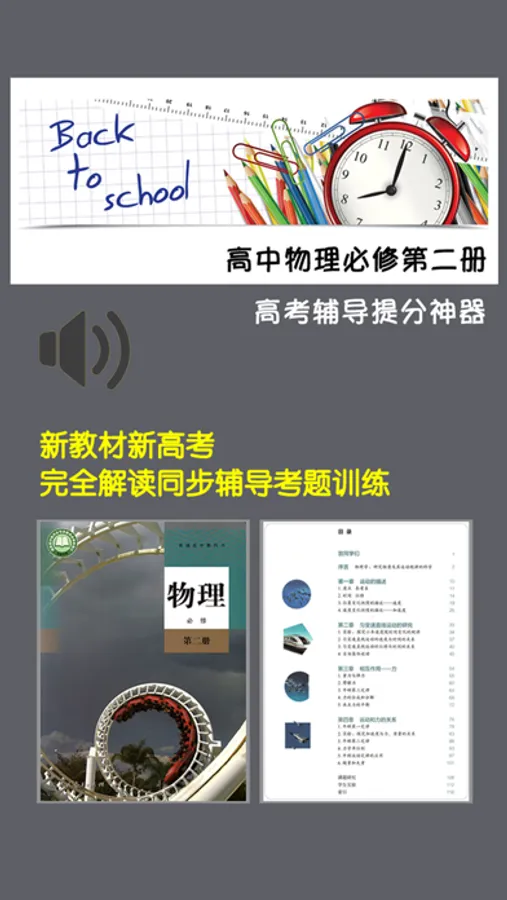 本应用依据新课改标准,参考新《考试大纲》,完全解读新教材物理知识点、重难点、技巧点、能力点,同时又包含新课标体现的基本物理思想、物理方法、物理规律和解题技巧。