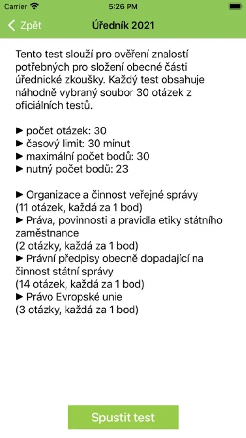 Aplikace slouží k přípravě na složení obecné části úřednické zkoušky pro úředníky podléhající státní službě.