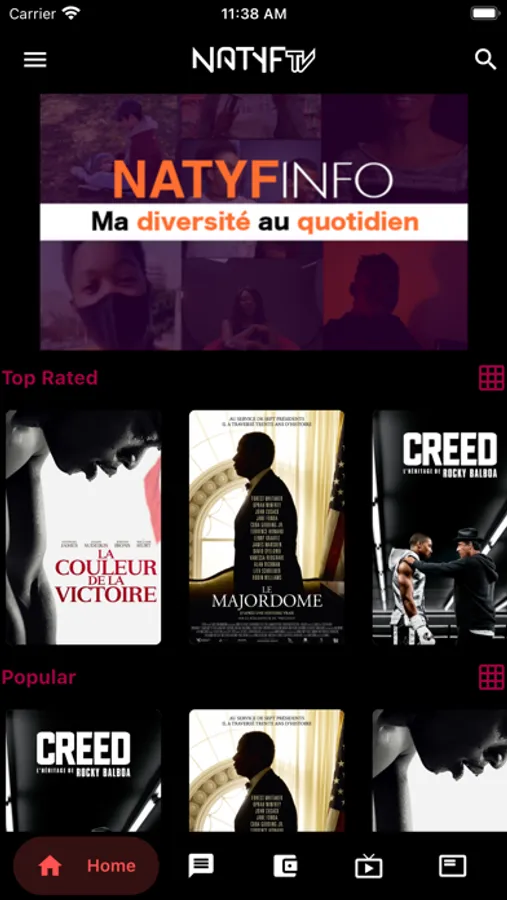 Natyf TV est une application mobile qui diffuse du contenu francophone international axé sur la culture urbaine qui influence le cinéma, la musique, la télé, la mode, la danse et les arts visuels.