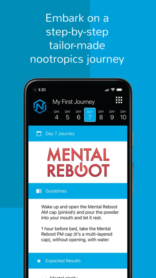 The app includes our “30 Day Guided Nootropics Journey”, which is designed to help you get the absolute most out of your Nootopia stacks.