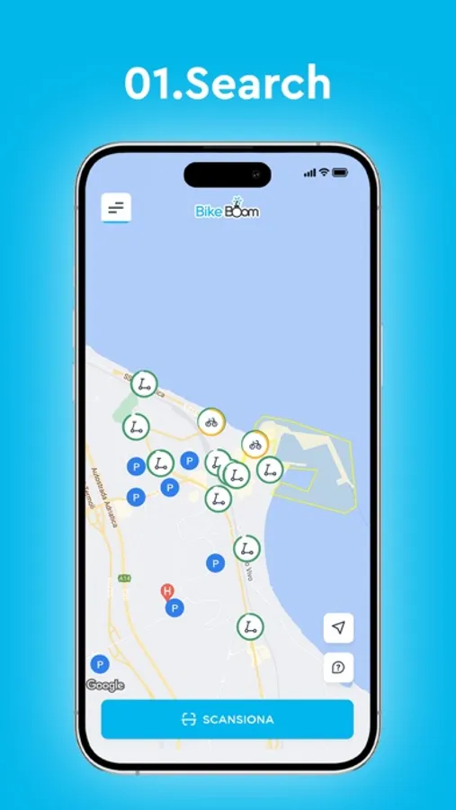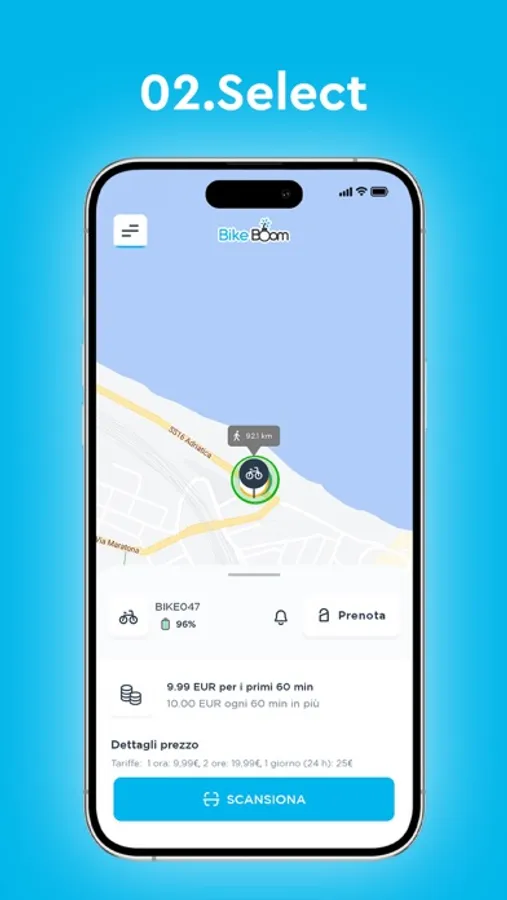 With BikeBoom, travel whenever you want on our electric scooters and our e-bikes. These are means available at any time to take you around in many places in Abruzzo. From the coast to the cities. Just click to find a vehicle near you, scan the QR code to unlock it and go. Simple, isn't it?