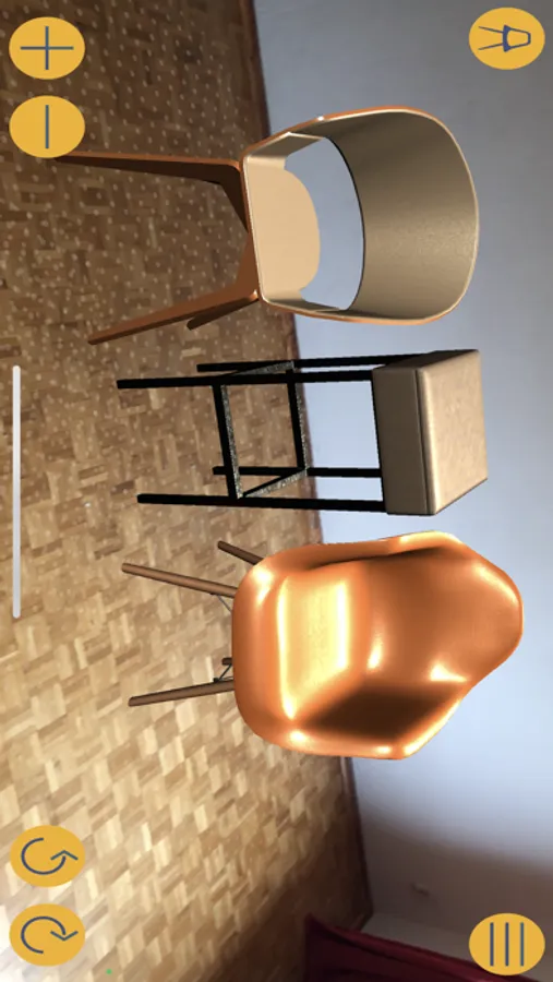 Planen Sie Ihr Wohnzimmer, Schlafzimmer oder sonstige Zimmer mit Augmented Reality. Mit über 20 vorgegebenen Möbeln, darunter Sofa, Bett und Tisch.