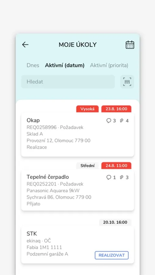 • mít kontrolu nad svými naplánovanými požadavky přehledně v kalendáři