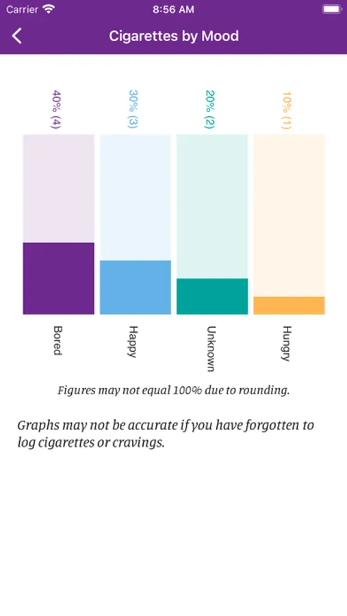 • Set up optional alerts to receive facts about smoking, inspiring quotes, reminders to log smoking, etc.