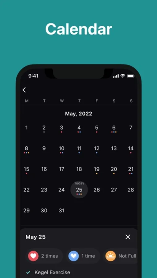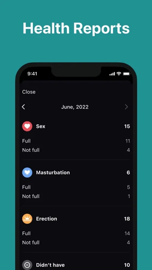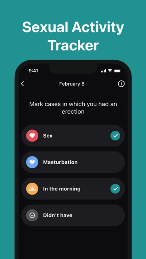 Take charge of your sexual health journey with a visual representation of your sexual activity. Foster a conscious mindset, remain focused on your goals, and ensure you're taking the necessary steps to achieve them.