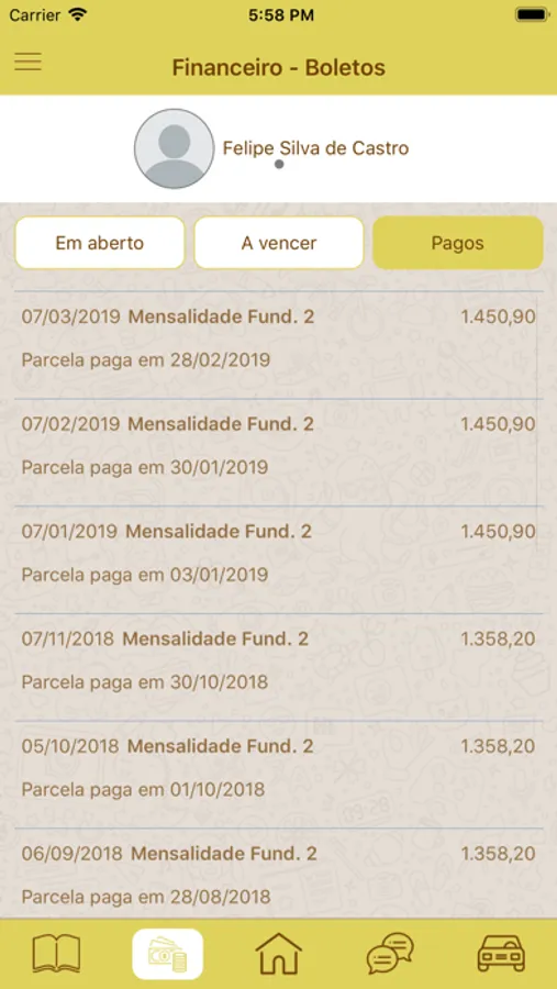 - Impressão de boleto bancário (para responsáveis financeiros) com atualização de valores;