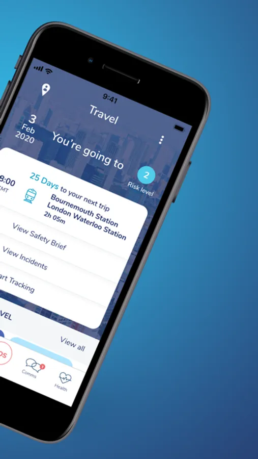 The Anvil app provides users with a simple interface to review their trip information (if travelling) and is integrated with our Riskmatics services.