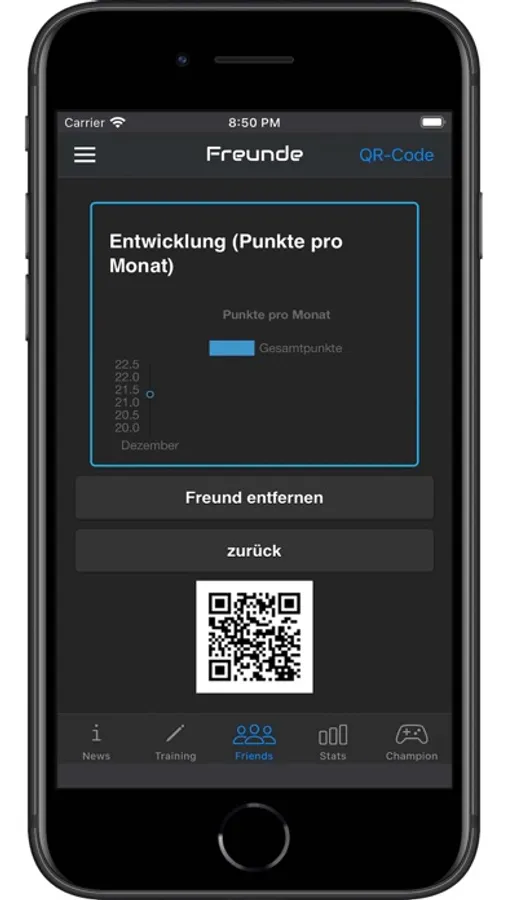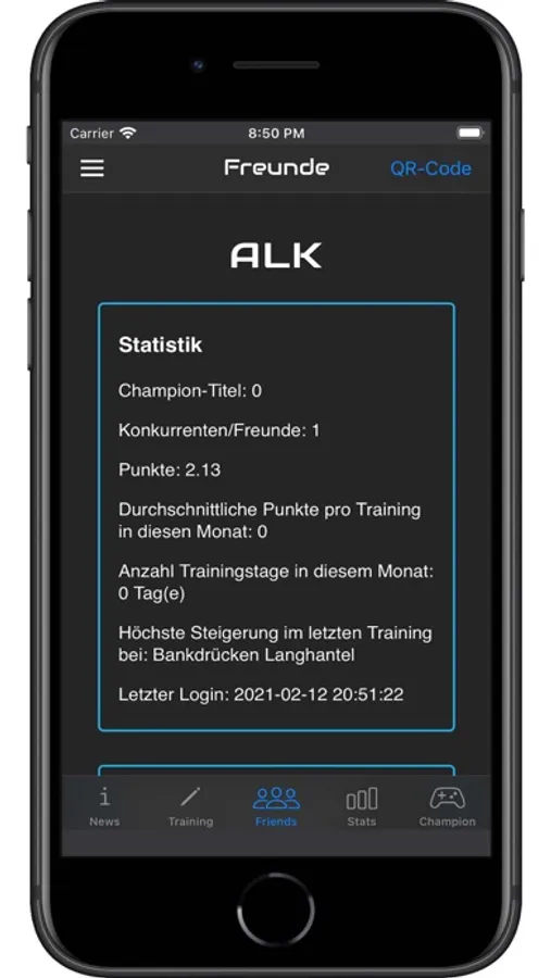 Find your friends in the app by their nickname or scan their QR code and add them to your friends list. Check their scores and their current workout schedule. Show them what YOU can do!