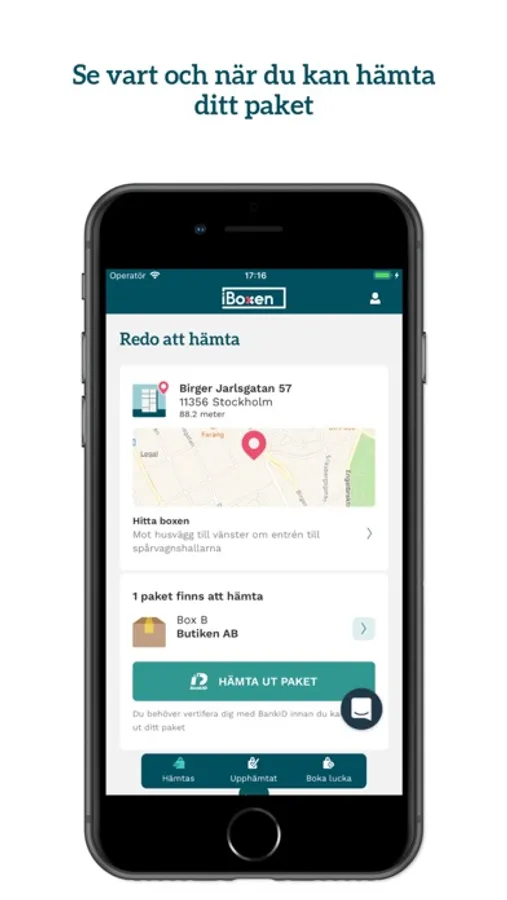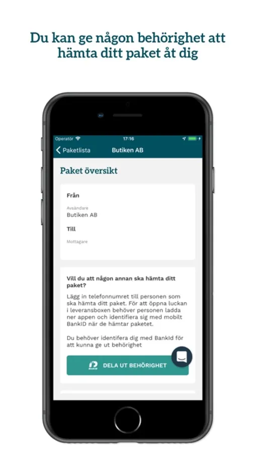 För att kunna hämta ut ett paket som mottagare behöver du använda denna app, ditt telefonnummer och BankID för att hämta ut ett paket efter SMS-avisering.