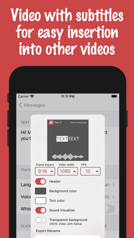 * Create a video file on synthesised speech with subtitles and specified parameters (video with a transparent background is supported - HEVC with Alpha).