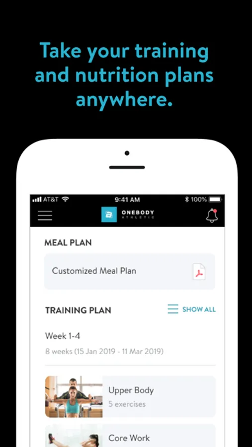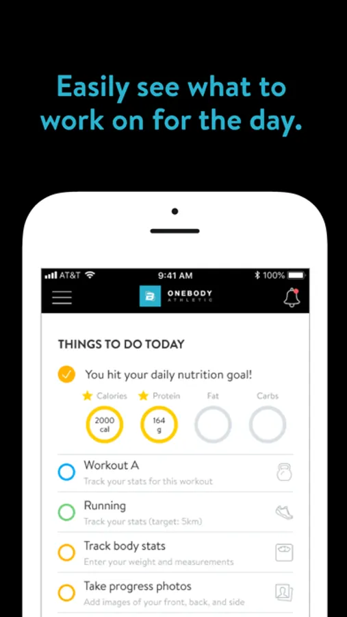 With the One Body Athletic App, you can start tracking your workouts and meals, measuring results, and achieving your fitness goals, all with the help of our expert coaching team.