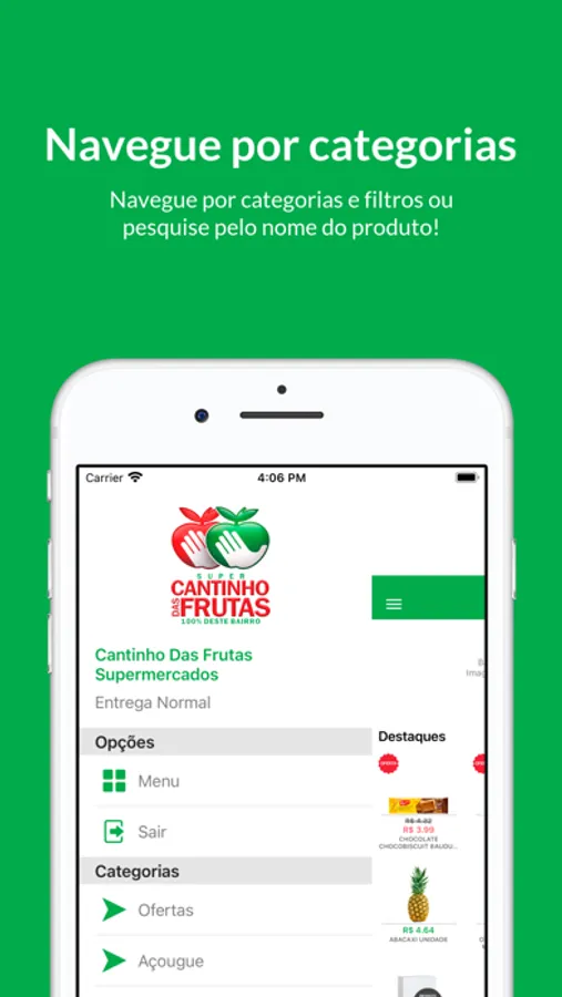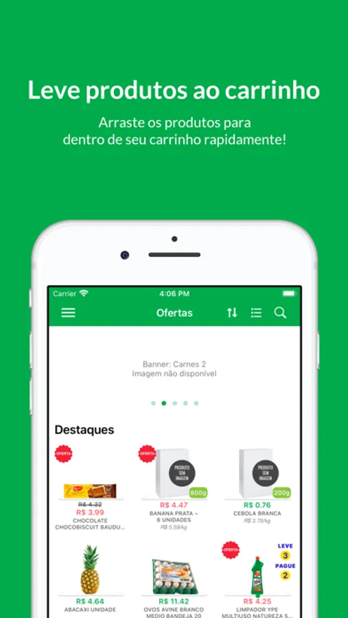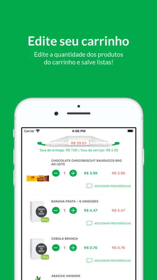 • Adicionar produtos no seu carrinho com um simples tocar e arrastar.