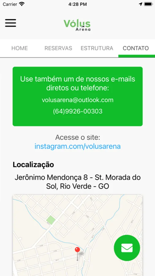Confira pelo app nossas informações de estrutura, localização e contato com o centro esportivo.