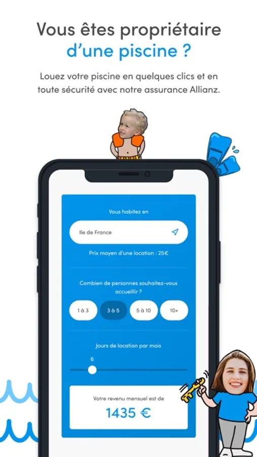 #1 Search for the city where you want to swim on Swimmy. Filter the available pools by size and amenities (heated pool, indoor pool, jacuzzi, barbecue, spacious backyard...)