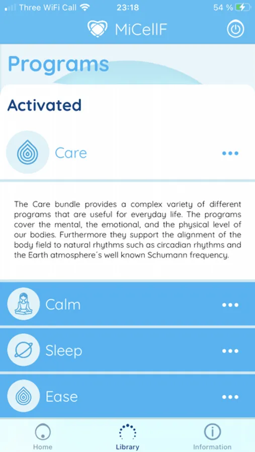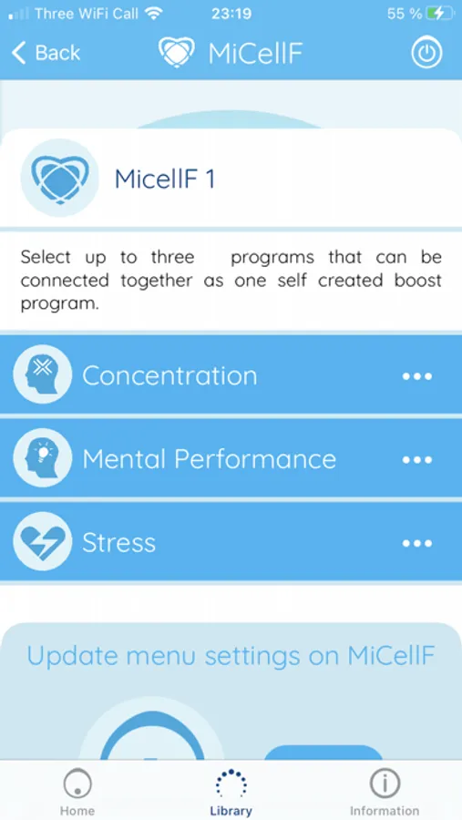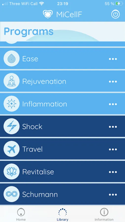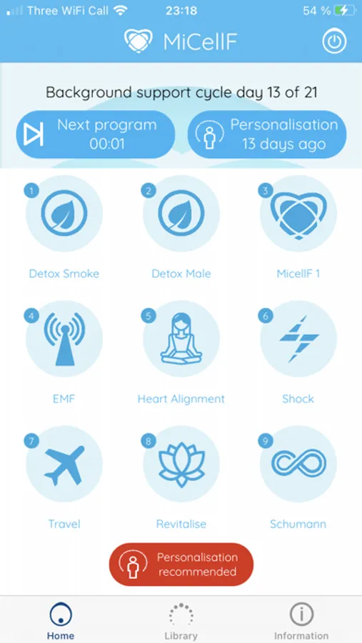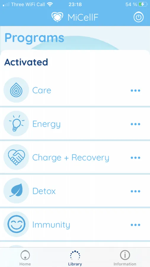 Use the MiCellF app to setup your MiCellF ONE device. The first automatic and configurable PEMF device in the world. Select and sort PEMF programs the way you want. Support your circadian balance 24/7 via personalised PEMF programs.