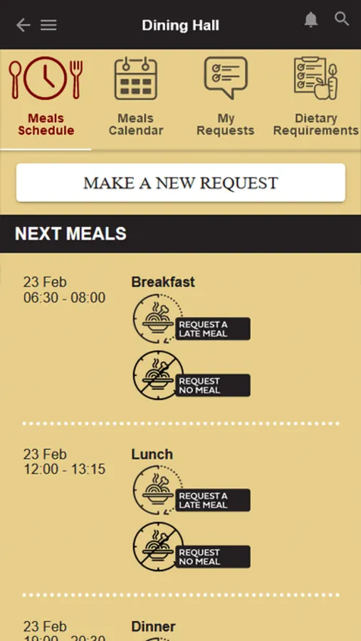 * Dining Hall schedule: meals, dietary needs, cancellations & changes