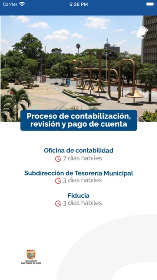 Los contratistas prestadores de servicio y proveedores que actualmente estén vinculados a la Alcaldía de Santiago de Cali, podrán visualizar el estado actual de sus cuotas o números de cuenta y fecha de actualización.