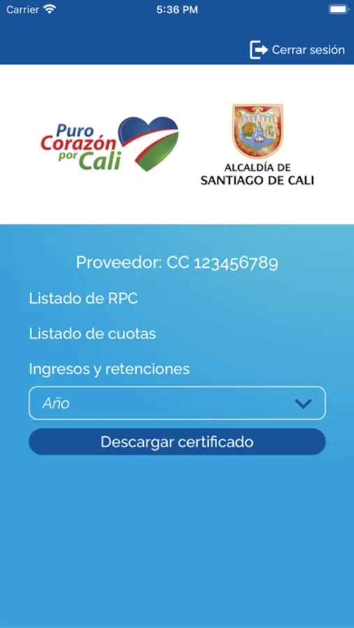 Esta aplicación está destinada a los contratistas prestadores de servicio y proveedores de la Alcaldía de de Santiago de Cali.
